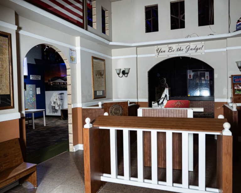 Welcome to the Hometown Courthouse where kids can pretend to be Judges and have fun debates, trials, or votes on who will become the next Mayor of Hometown!